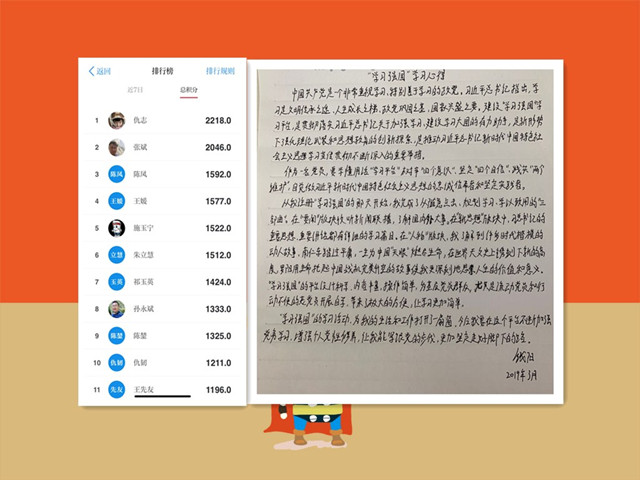 在他们的带动下,栖霞社区便民服务中心组建了学习小组,取名为“比学赶超”,9名成员近7日学习积分不分上下,工余时间谈论最多的也都是“学习强国”。便民服务中心的负责人说:“这个学习平台太强大,聚合了大量可免费阅读的期刊、古籍、公开课、歌曲、电影等资料,给我们中心带来了最新的理论指导和精神食粮。自从使用这个平台,大家为民服务的动力更足、精神面貌更好了。尤其是仇志同志,连续两次获得周冠军,是大家的标杆。”