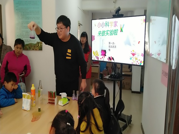 赛先生的魔法课堂开课啦!2018年底,闻兰社区在栖霞区民政局的支持下实施了社区营造项目——“科普伊甸园”,项目包括阵地改造和活动开展两部分。上周六也就是3月16日,闻兰社区和南京师范大学化科院合作的“赛先生的魔法课堂”第一节在在社区会议室开展。