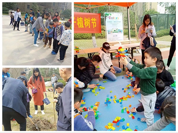 搭积木、种小树苗活动,不仅能够培养小朋友的动手、动脑能力,增强孩子们的爱绿、护绿、植绿意识,同时,通过这种亲子间的互动,增进了亲子之间的感情,也为年轻的家长们与孩子们沟通提供了很好的渠道。