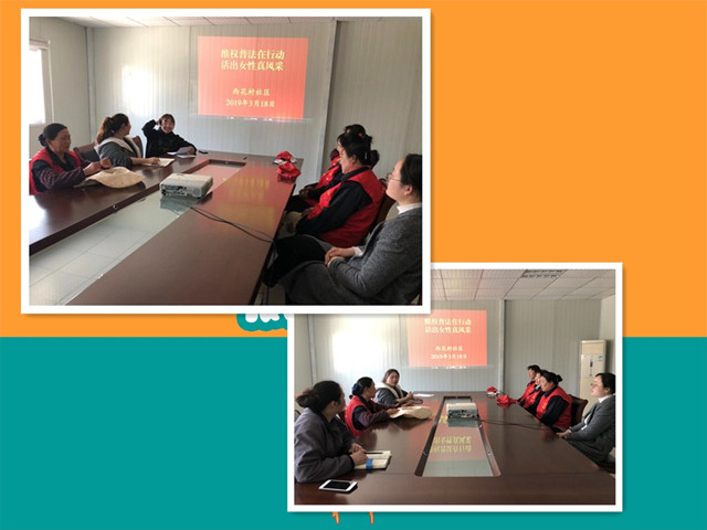 为进一步推进妇女法治宣传教育工作,提升妇女法律意识和维权能力,3月18日,围绕“三八”妇女维权周活动,西花村社区自发组织了一场为辖区女性准备的妇女维权法治课,党员、便民大厅工作人员及志愿者参加到此次活动中。