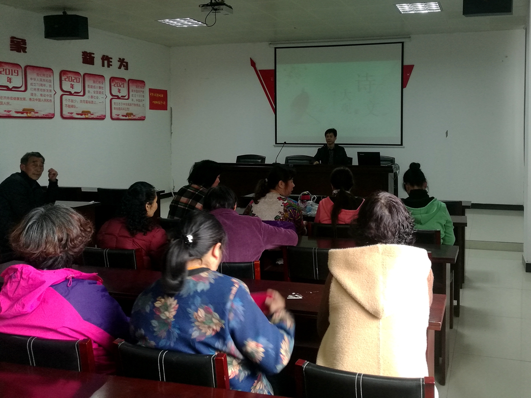 八卦洲街道社区教育中心紧跟地方的的需求,以文化为引领,充分发挥社区教育功能,发掘地方文化,打造地方特色文化名片。3月20日下午,一街一品特色项目——洲史大讲堂走进下坝村。第一项内容由社区教育中心陈义和校长进行第四讲——《诗文大观》的宣讲,吸引了50几位村民前来听讲。