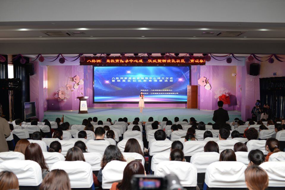 观摩活动分为两个环节,第一个环节为八卦洲家庭教育指导中心启动仪式。首先,八卦洲街道办事处倪天华主任致辞。倪主任对八卦洲取得的教育教学成果给予极大的肯定。并且指出,教育好孩子,需要政府、社会、学校和家庭通力合作,帮助孩子获得更好的受教育机会,为孩子一生的健康幸福夯实基础。并希望八卦洲家庭教育指导中心成立后,真正发挥其作用,促进八卦洲教育的发展。接着,栖霞区教育局葛德华副局长发表讲话。葛局长认为,学校教育与社区教育应融合起来,发挥合力作用。葛局长回顾了栖霞区社区教育近年来取得的发展成果以及对社会发展产生巨大的影响和促进作用。然后,八卦洲中心小学副校长朱琍琍发言。朱校长以《八卦洲街道数说家庭教育》调研报告的情况反馈,指出家庭教育存在的问题和做好家庭教育的重要性。朱校长还为大家介绍了八卦洲家庭教育指导中心的组成以及主要工作内容。