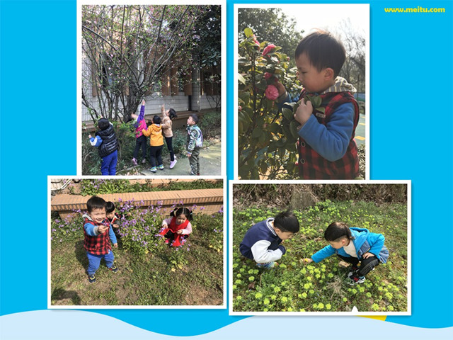 瞧!山茶花绽放着笑脸,贴梗海棠悄悄探出枝头,婆婆纳顶着蓝色的帽子在窃窃私语,蒲公英伴着风姑娘跳舞,紫花地丁也不甘寂寞,和小朋友们打招呼呢!