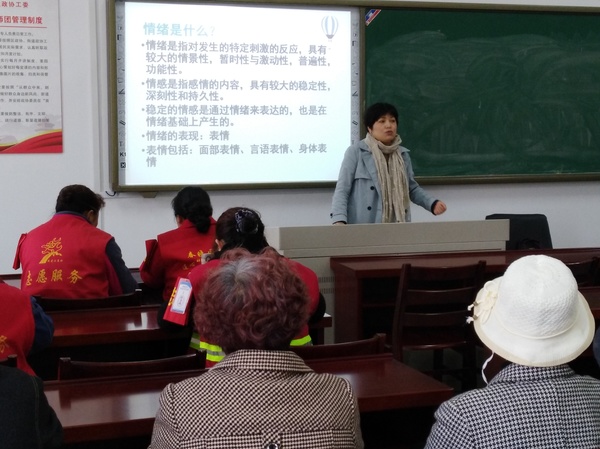 此次讲座的老师用深入浅出的语言向大家展示了什么是情绪;如何正确的表达自己的情绪;如何正确的控制自己的情绪;当出现负面情绪时,如何正确疏导自己的情绪。这一个个生动鲜活案例展现的同时,让参加讲座的居民们对情绪的合理管理