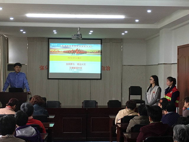 为增强居民消防安全意识,提高消防知识,2019年4月16日上午,五福家园社区居民学校邀请消防大队举行了一场以“消防安全进万家”的主题讲座。