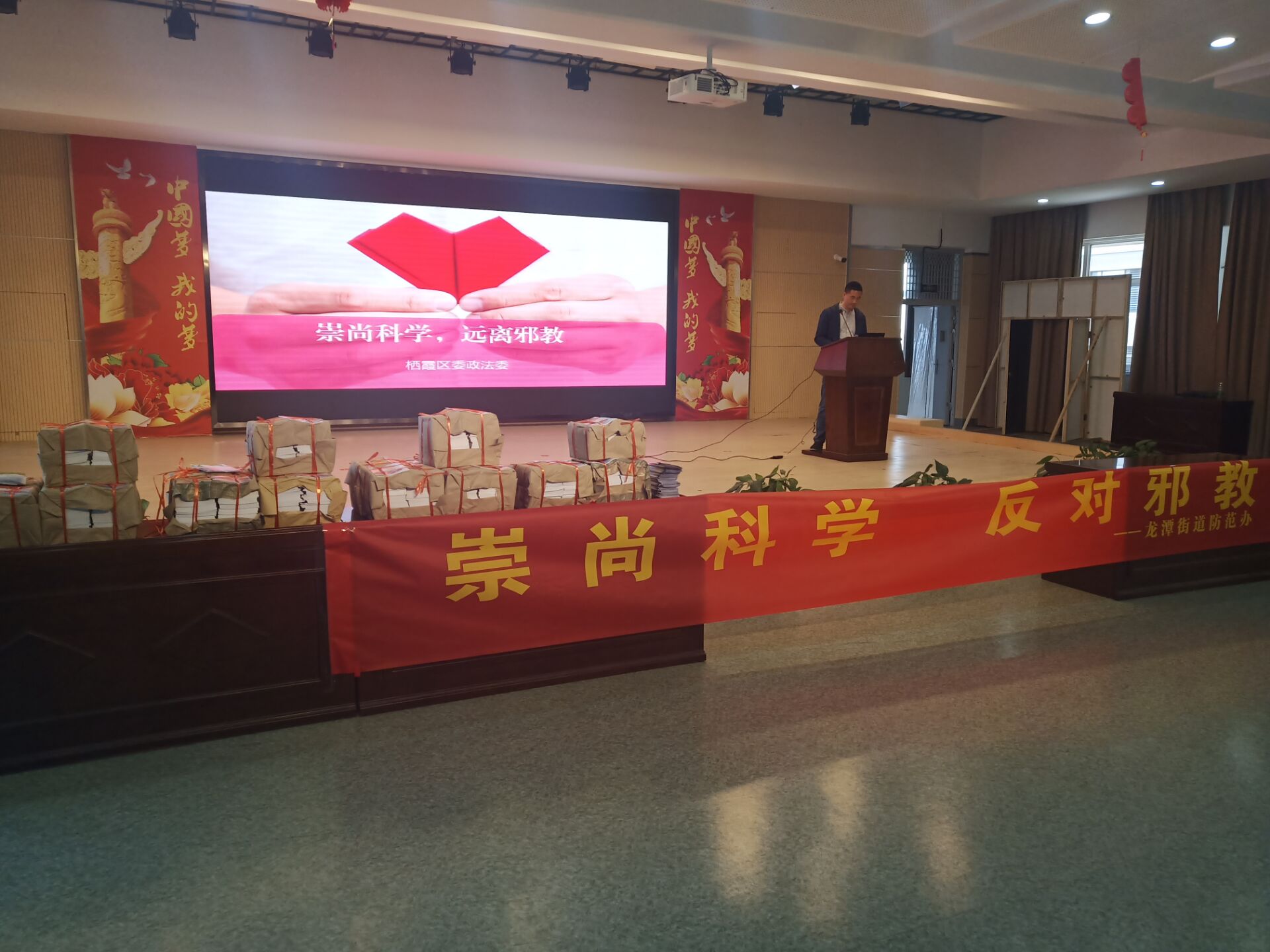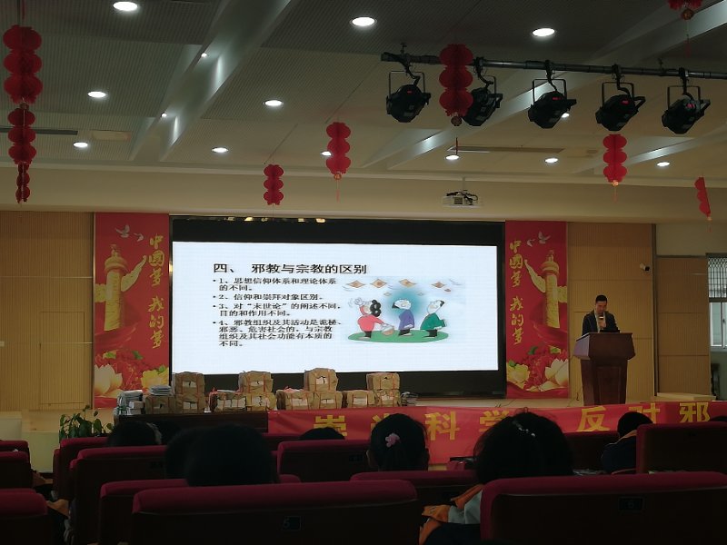 4月17日下午,龙潭街道社区教育中心联合街道综治办在龙潭中心小学举办《崇尚科学,远离邪教》主题宣传教育活动。首先街道综治中心向龙潭中心小学学生捐赠了12000本印有本次活动的宣传小册子,让宣传内容走进课堂,走进每一位学生,接着,区政法委反邪教协会张航航科长给全体同学讲了《崇尚科学,远离邪教》讲座。张科长通过生动形象的动漫课件,通俗易懂的语言,给同学们讲解了科学与邪教的本质区别,教会小学生如何识别邪教,自觉抵制邪教,并通过“小手拉大手”的形式,要求每位小学生回家后向爷爷、奶奶、爸爸、妈妈以及身边人进行宣讲。今天的活动全校400多名学生聆听讲座,会上讲解老师还同学生们进行了互动。学生们通过今天的教育活动,深刻认识到了邪教的危害,教育效果良好。