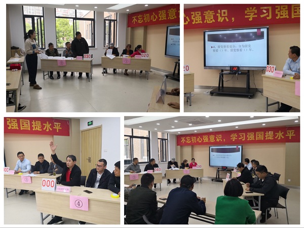 此次知识竞赛以 “不忘初心强意识,学习强国提水平”为主题,活动以党总支下设四个党支部:观梅东苑、观梅西苑、步青苑、天佑苑各党支部为单位,每个支部推选三名党员代表参加比赛。知识竞赛题目全部来自于学习强国APP上,题目涵盖党建知识、纪检知识、法律知识等多个方面,题目类型设置为必答题、抢答题和风险题。