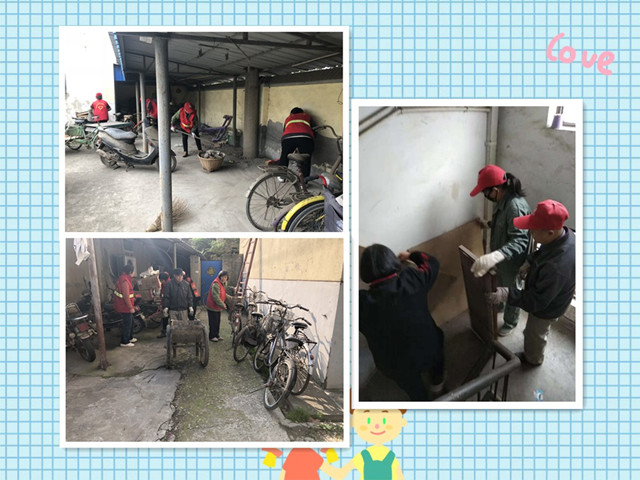 在环境整治方面,社区学校、党支部组织社区志愿者、党员、工作人员对社区所有楼道、车棚进行了全面清理。排查统计僵尸车辆,协调车主进行处理;统计各处卫生死角,清理重点、难点,分工到人,做到不留死角,不避难处。