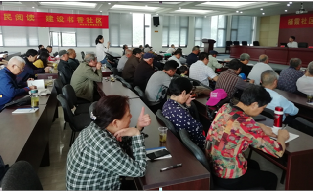 开展“全民阅读”活动,是中央宣传部、中央文明办贯彻落实党的关于建设学习型社会要求的一项重要举措。为了全面提升社区居民的文化素养,积极营造社区人人爱学习、时时受教育、处处讲文明的良好氛围,构建和谐、文明、祥和的新型社区,5月13日上午,栖霞社区居民学校邀请南京大学哲学系的博士研究生王运捷在社区四楼会议室开展以“倡导全民阅读,建设书香社区”为主题的读书会活动。