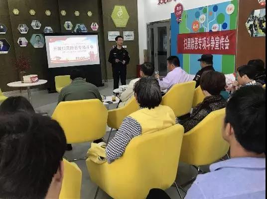 宣讲会开始,谭警官首先给大家解读了党中央和国务院共同发布的《关于开展扫黑除恶专项斗争的通知》,详细讲解了此次专项斗争活动的目标及意义。随后,又根据所管辖的三个社区的治安情况,做了扫黑除恶专项斗争活动在社区的落实情况。此次宣讲会社区书记做了总结发言,望全体居民及物业人员全面配合派出所的扫黑除恶专项斗争活动。宣传会最后各小区物业与书记、谭警官共同沟通交流小区治安中还存在的问题以及相关改善的建议。