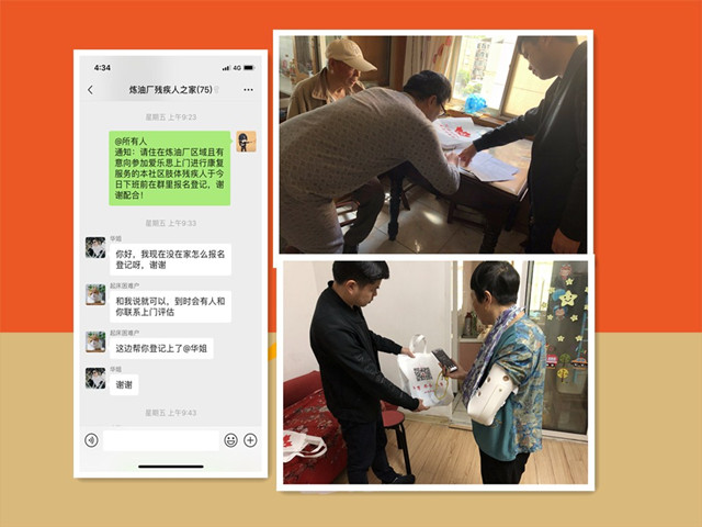 5月10日,炼油厂居民华阿姨在“炼油厂残疾人之家”微信群内求助,“你好,我现在人不在家,该如何报名参加社区组织的爱乐思上门康复服务肢体残疾人活动?”,3村32栋的杨梅在“炼油厂残疾人之家”微信群内了解到社区免费为低视力群体开展验配工作的消息,及时在群内报名配一副眼镜。近期,炼油厂区域居民学校党总支通过开展入户登记残疾人数据动态更新工作,建立起了炼油厂残疾人之家微信群,为残疾人和政府、残疾人之间搭建了沟通的桥梁。