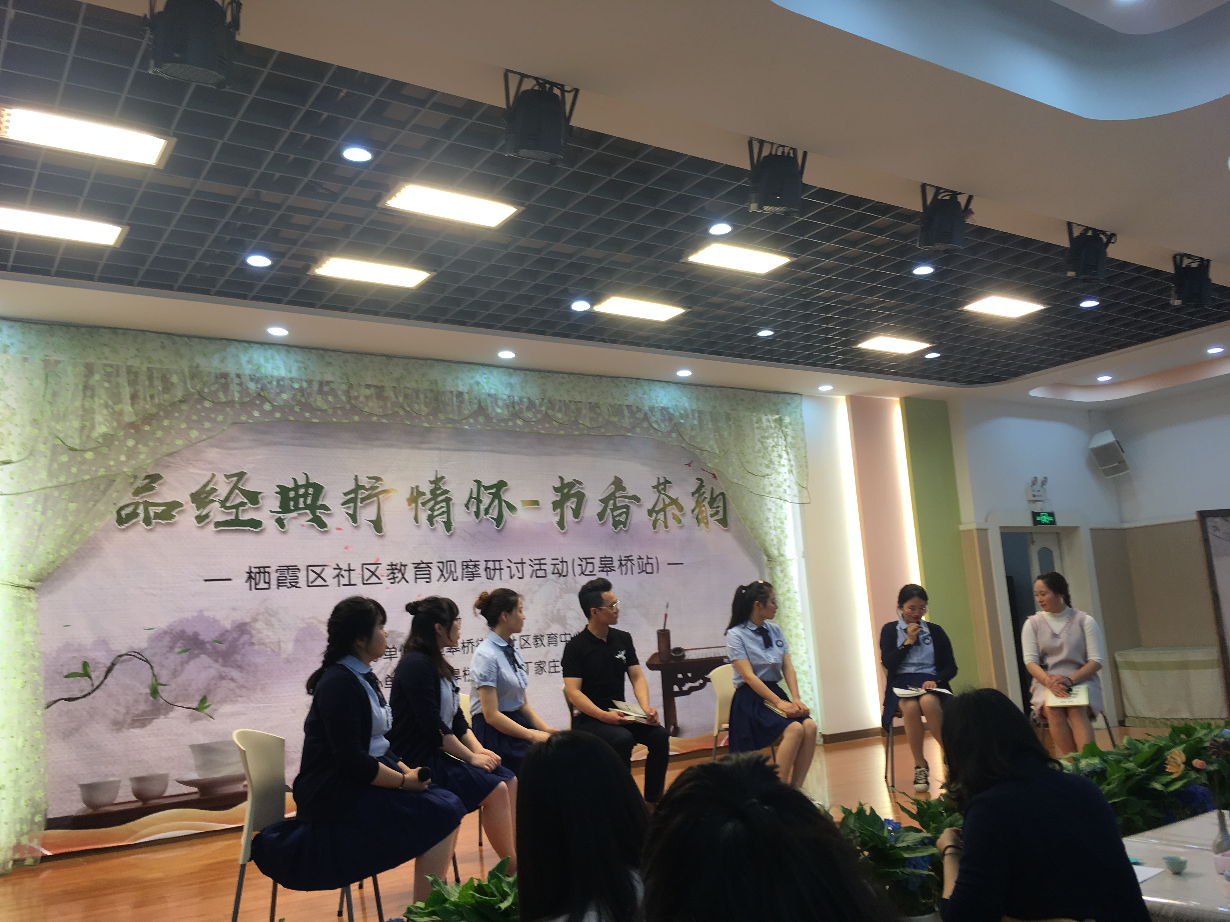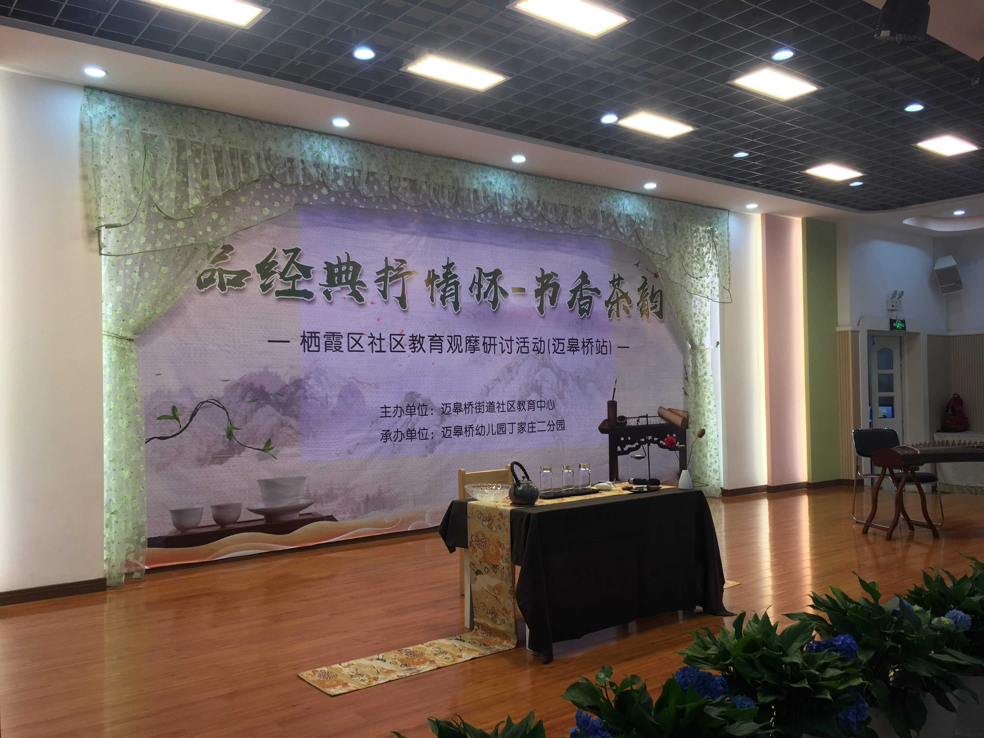 5月17日,2019年栖霞区社区教育观摩活动继续推进,这一站来到迈皋桥。迈皋桥街道社区教育中心围绕品牌“品经典抒情怀”,以品茶读书为载体,引导社区居民和青少年读诗书,品经典,悟人生。参加本次活动的有栖霞区教育局葛德华副局长,栖霞区教育局职社科王德文科长、周飞科长,栖霞区社区培训学院王广胜校长、谷雨娥副校长,各街道社区教育中心校长和老师,各街道驻点老师,迈皋桥幼儿园丁家庄第二分园的教师代表和家长代表。