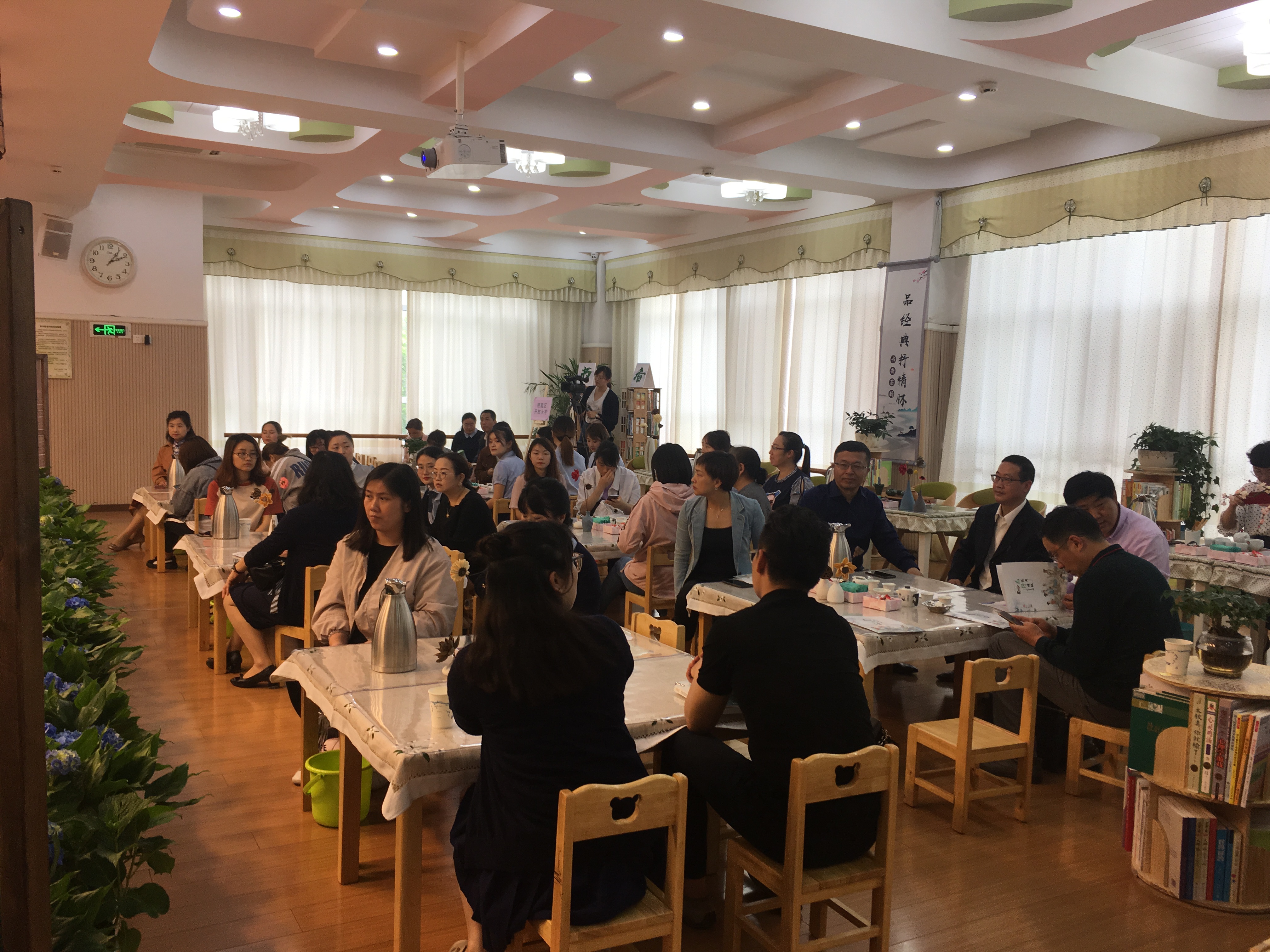在悠扬的古筝声中,活动拉开序幕。茗士居的香香老师为大家展示了泡茶的过程,又向大家科普了各种茶对于养生的作用,带大家通过品茶艺感受中国传统文化的魅力。接着,幼儿园的家长和师生向大家进行经典诵读表演。尤其是幼儿的故事表演《三字经》和《曾子杀猪》,赢得台下阵阵掌声。最后,幼儿园教师和家长代表开展了以“书,生活和理想”为主题的沙龙。他们向大家分享了自己读书的经验和感受,使在座的各位都受益匪浅。
