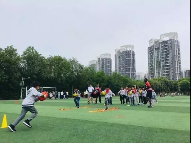 活动主要以兴趣体验和培养为主,以双语教学和团体协作为亮点,深深抓住了小朋友们的心。教练先是与小朋友们亲切交谈,拉近距离之后,进行热身绕圈跑活动。接下来还给小朋友细心传授了橄榄球的相关知识,并教小朋友们正确的传球姿势。最后进行团队橄榄球训练,增加了力量训练和团队训练。传达给孩子们不屈的意志和绝对的团队精神。只有每个人环环相扣地全力协作,才能争夺属于橄榄球员的胜利和荣誉。教练和老师都提出,将这种意志用到学生们的学习生活中,团结奋力,努力拼搏。