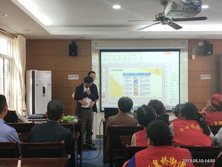 李老师通过播放PPT向居民和社区物业工作人员讲解了为大家讲解了防灾减灾相关的常识和应急救护技巧,从理论和操作两个方面对应急自救互救知识,让居民懂得如何积极应对各类灾害及意外事故,用切实有效的应急救护技能保障自身人身财产安全;现场播放减灾地震篇和台风篇,通过讲述真实的地震灾害案例,教老居民在遇到地震灾害和火灾时如何做好逃生及自救互救。还现场教授了两种急救办法:心肺复苏和海姆立克急救法。宣讲结束后现场开展了实地紧急疏散演练,演习人员在专业人员的指导下,有序的从“失火”建筑撤离。