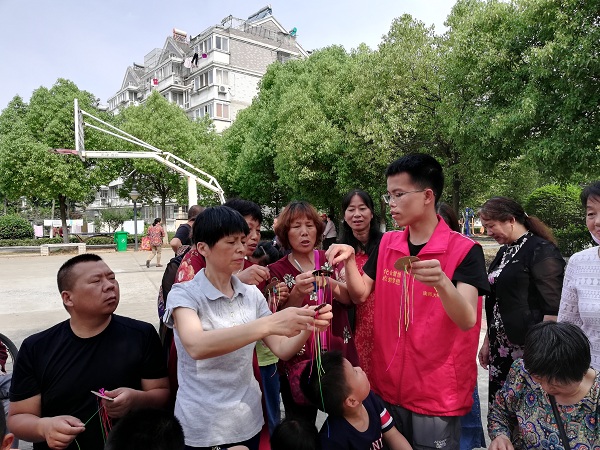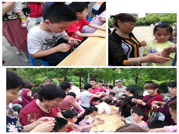 活动开始后,孩子们和老人们一起制作端午线,其乐融融、有说有笑,让大家感受到了亲情的温暖幸福。活动结束后老人们总会把做成的端午线给孩子戴上,将最美好的希望寄予在他们身上。能给老人带来快乐就是闻兰社区最终的目的,期待下一次的志愿服务。