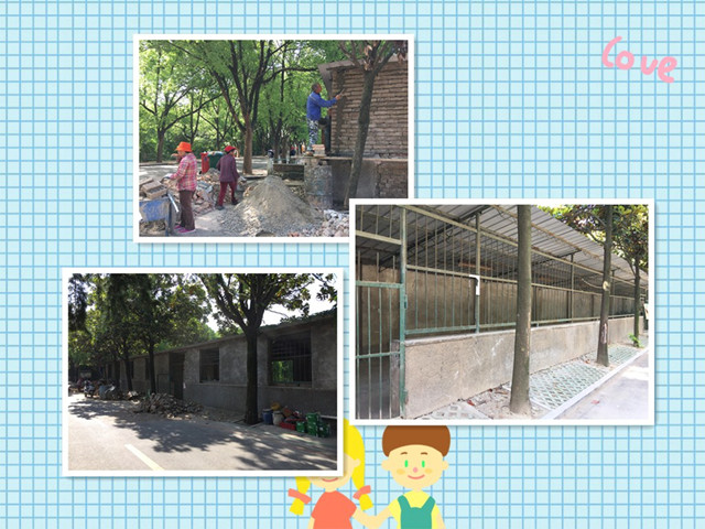 施工现场,工程队员将老旧腐蚀的墙面敲碎,换上一块块崭新的砖头;将原本大面积的铁栏隔离替换成平整的墙面。石子、水泥、砖头、沙粒铺在主干道上,社区工作人员定时对施工现场进行巡查,要求施工人员注意环保要求和施工安全,避免与居民发生矛盾纠纷。