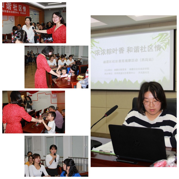 6月6日上午,2019年社区教育观摩活动第四站来到西岗。端午,中国最传统的、重要的节日之一,人们用端午节纪念伟大爱国诗人屈原。为了让社区居民更加了解端午、感受传统节日的魅力和精髓,在端午节来临之际,西岗街道社区教育中心联合齐民路社区精心策划了一场“浓浓粽叶香 和谐社区情”端午节活动,与广大社区居民共同迎端午、包粽子、做蛋篓、传文化。参加本次活动的有西岗街道分管领导吴凤琴副主任、教育局职社科王德文科长、区社区学院王广胜校长、谷雨娥副校长、齐民路社区朱宇书记,还有各街道社区教育中心的校长、专职教师、社区学院的专职教师,齐民路社区的居民代表们。