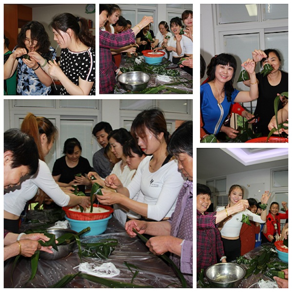 最后现场教授包棕子,包粽子的都是来自社区的居民,他们精神饱满、劲头十足,糯米、蜜枣、粽叶在他们灵巧的手中翻转飞舞,变成一个个美味的粽子。