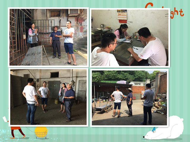 检查中,环保工作人员在企业负责人的陪同下巡视厂内一周,提出以下几点问题:一是现场环境“脏乱差”,需要加强管理,及时清洁;二是为了防止噪声污染,禁止现场进行电钻加工或者喷漆;三是严格固废处置,建立“防雨、防渗、防漏、防晒、防腐”的固废仓库、粘贴固废标识,同时与有资质的单位签订协议进行合理转移。