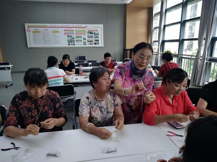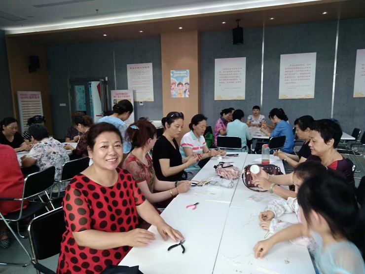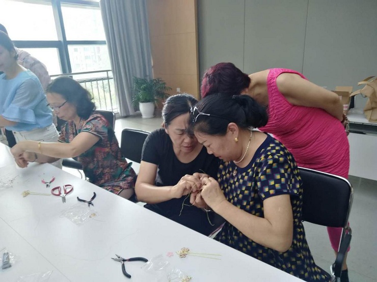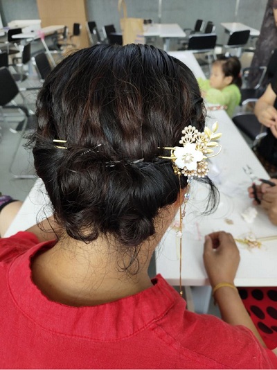 在快节奏的生活里,能静心坐下来用双手慢慢地给自己做一个手工发簪,本身就是一种放松。看大家都认真细致地制作自己的发簪,还不时互相交流学习,场面非常温馨和谐。