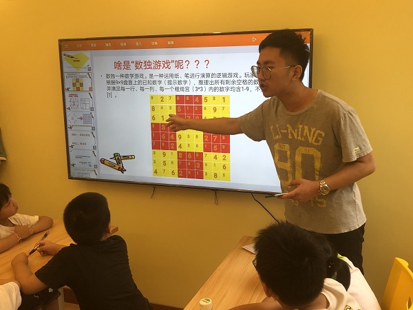 数独作为数学逻辑游戏,其本身魅力无穷。出于对小朋友年龄的考量,讲师将九宫格简化为六宫格,尽量让每个小朋友参与其中。一些孩子们已经接触过数独,他们积极踊跃的上台发言,指出图中空格应填数的唯一可能性。而没接触过的小朋友们,也在努力的学习着。看大家掌握得差不多了,讲师决定开展数独解谜竞赛。小朋友们乐在其中,解密成功的兴高采烈,还去教别的小朋友;遇到困难的苦思冥想,或去求助讲师或同学。上午便在一片欢声笑语中结束。