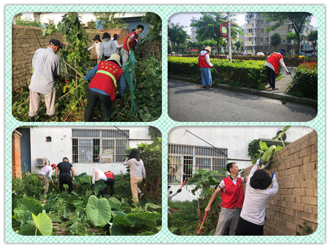 7月22日早晨6点半,社区工作人员、物业工作人员及志愿早早穿好工作服、带好帽子、戴好手套在五福家园社区转盘处集合,首先,工作人员清除社区转盘处及社区内的杂草和垃圾,虽然太阳渐大,温度渐升,但丝毫没有影响工作人员及志愿者们的工作热情,大家彼此加油鼓劲,而后,工作人员及志愿者们转向社区周边的菜场,拆除菜架,拔起菜苗,充分发扬不怕脏、不怕累的奉献精神,使居民区卫生环境焕然一新。