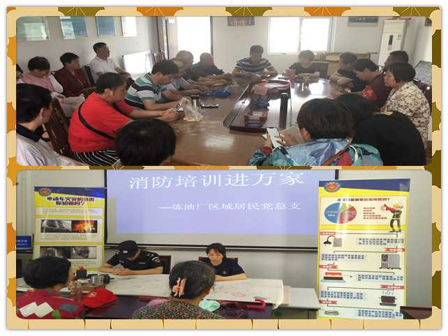 为减少辖区内消防安全隐患,进一步提高居民群众消防安全意识,近日,炼油厂区域居民党总支开展“学一点消防知识,添一份平安幸福”消防安全知识讲座。