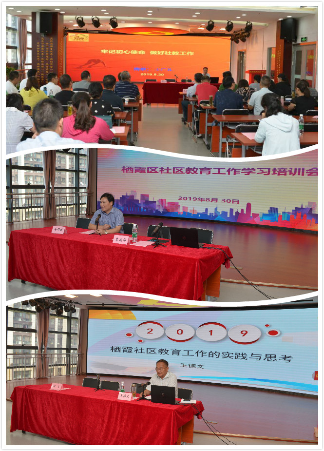 为进一步促进社区教育内涵发展,提升品牌打造水平,建设社区教育强区,8月30日,栖霞区教育局在仙林党群服务中心举办了2019年度社区教育工作者暑期学习培训会。栖霞区教育局葛德华局长,原职社科科长王德文,职社科夏禄斌科长、周飞科长,栖霞区社区学院王广胜院长、谷雨娥副校长,以及栖霞区全体社区教工作者参加了本次会议。