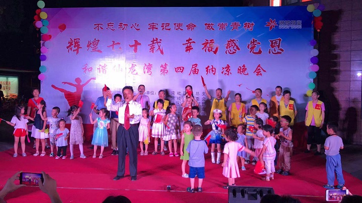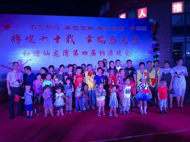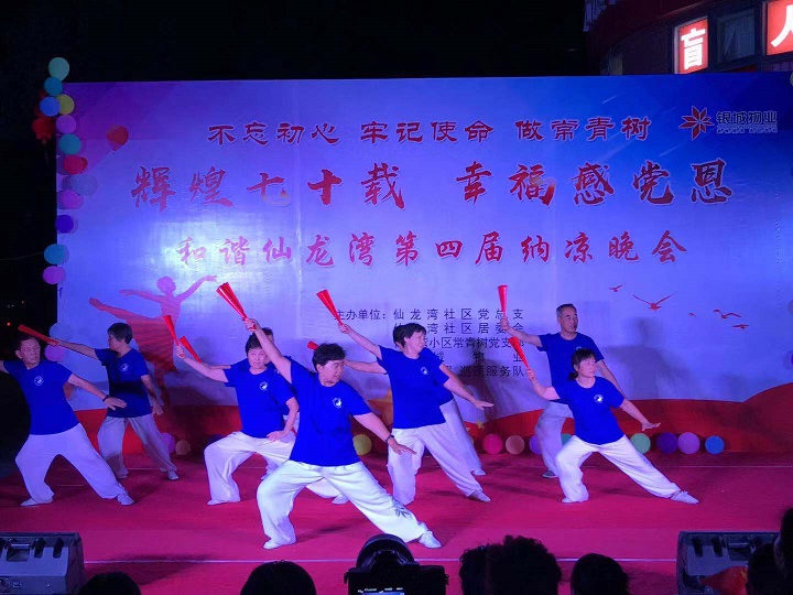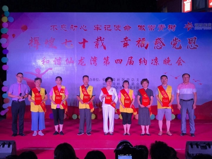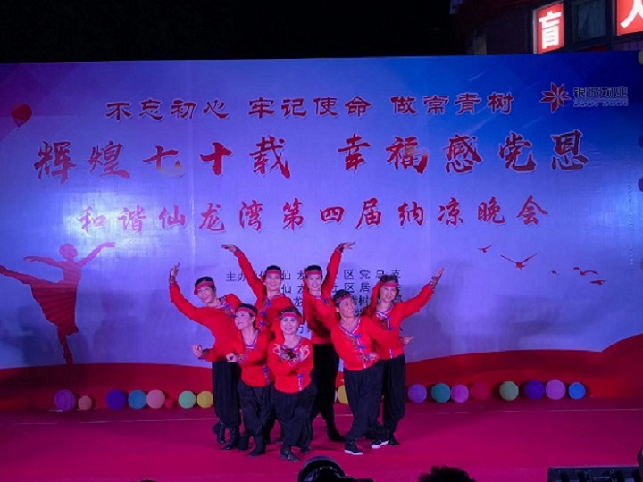 8月24日晚上,仙龙湾小区东大门广场上人头攒动,掌声不断,吸引了200余位居民驻足观看。仙林街道仙龙湾社区携手社区教育中心举办 “辉煌七十载 幸福感党恩”纳凉晚会正激情开演,为广大居民群众在炎炎夏日送去了丝丝清凉。