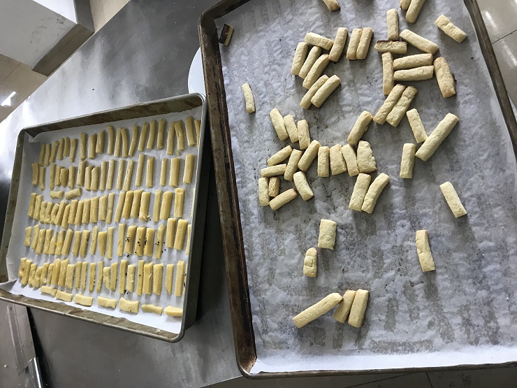 这次培训,主要分理论知识和实际操作两个方面。第一课,老师先教大家熟悉面粉、油脂、糖、鸡蛋等食材的性质以及面点制作的大致流程等。大家学得很认真,还有的人拿着笔记本,边听边记录面点制作流程的步骤。