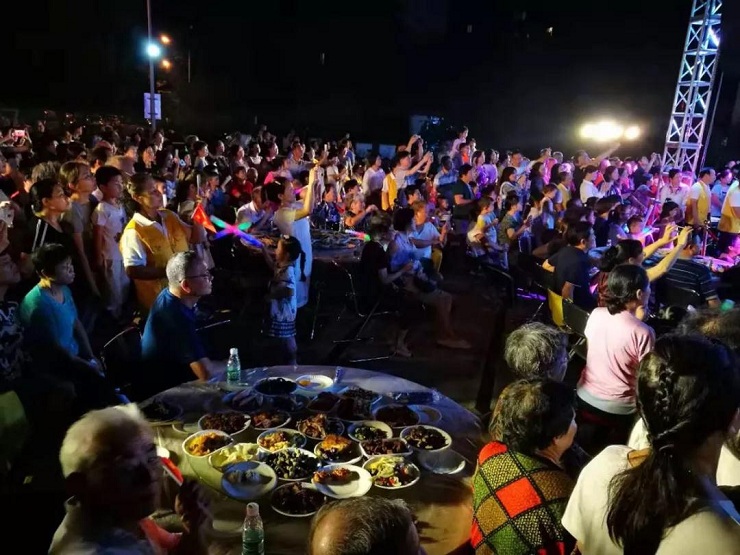 晚上7点,皓月当空,华灯齐上。在工作人员的提前组织和安排下,小区的空巢老人们早已提前入座,他们多为南京大学的退休教师,子女基本都在国外,中秋佳节,邀请他们来到活动现场观看演出、品尝美食,感受社区大家庭的温暖。伴随着充满节奏感的架子鼓演出,中秋夜视觉、听觉盛宴拉开了序幕。