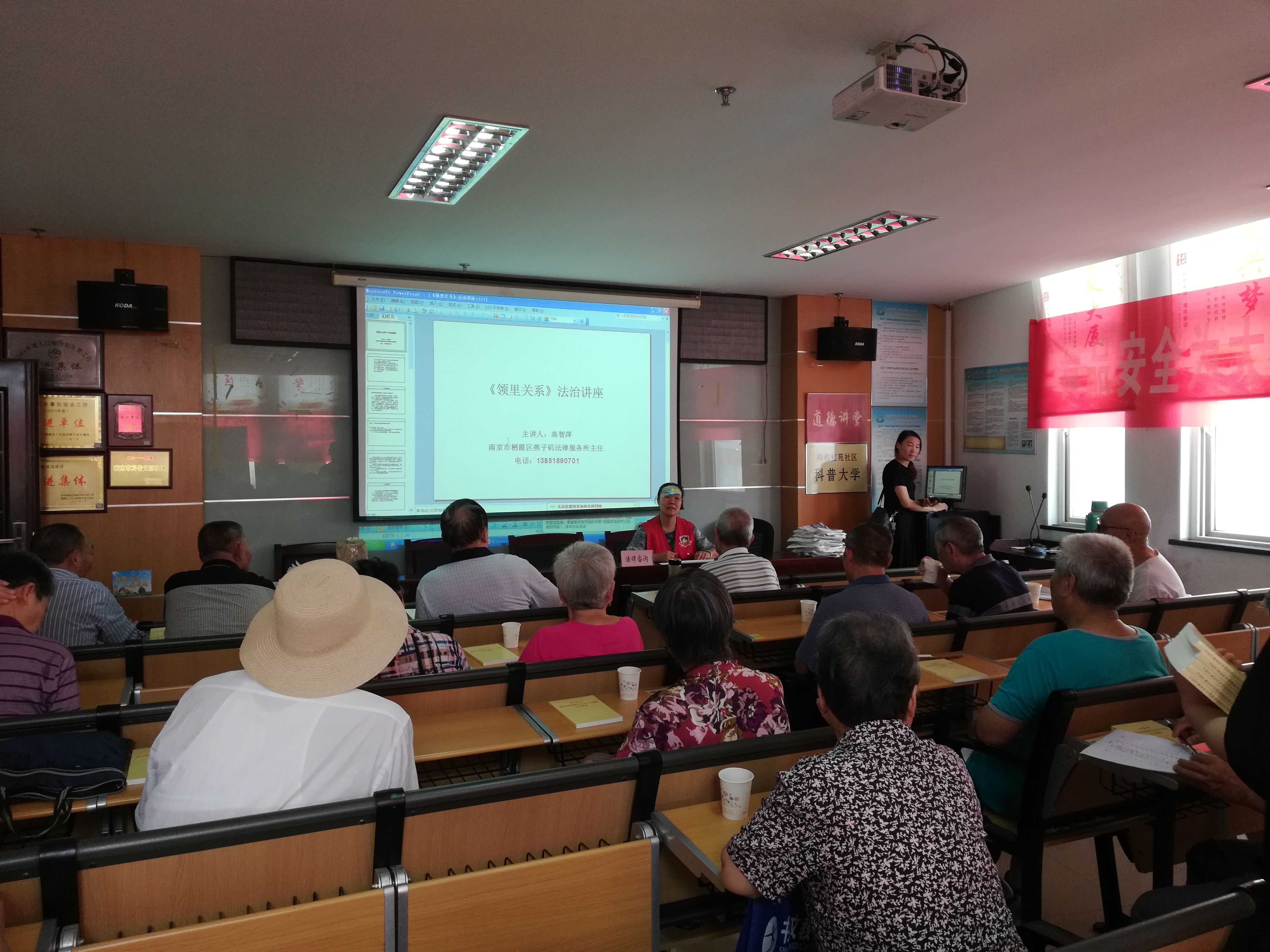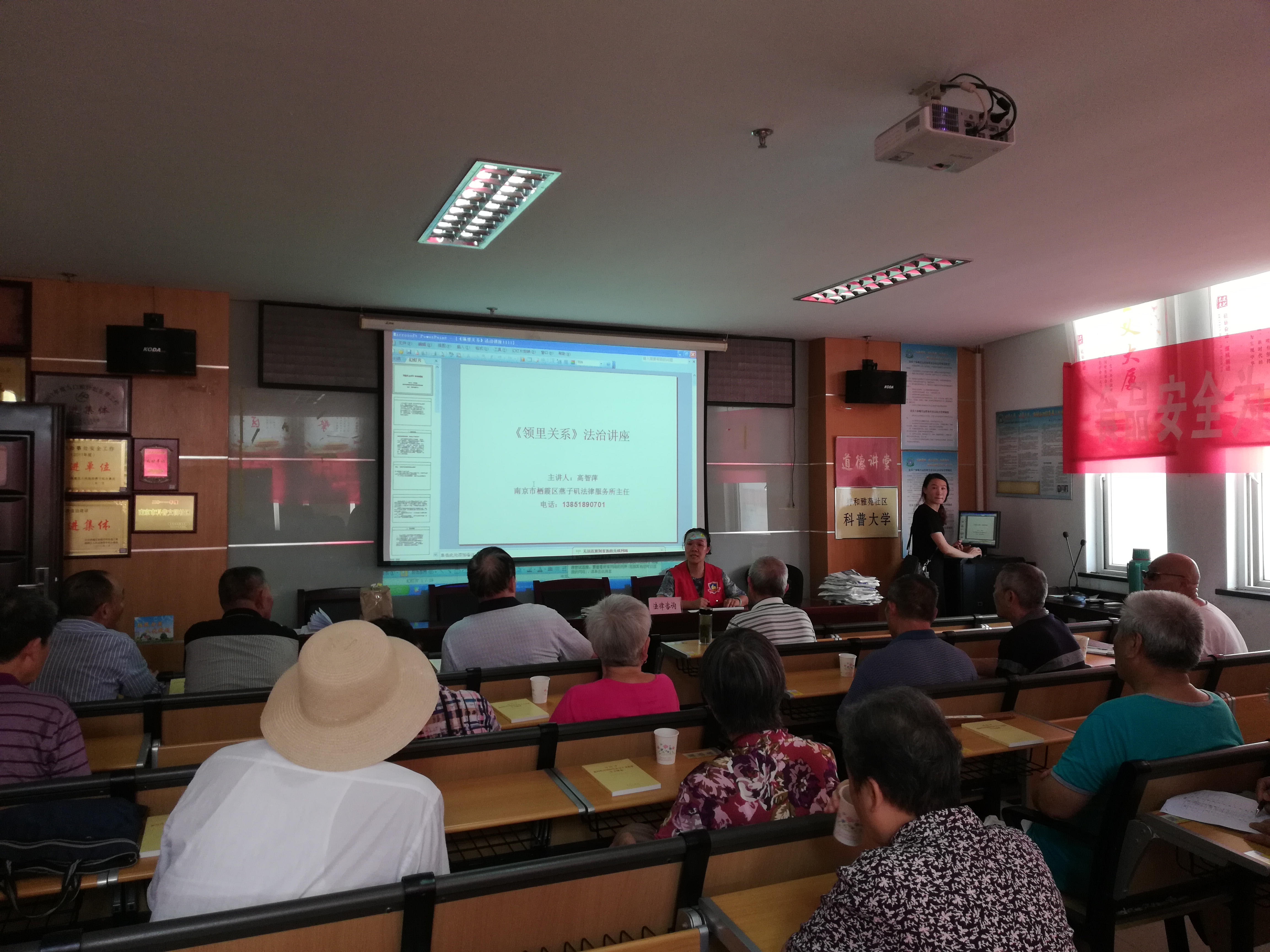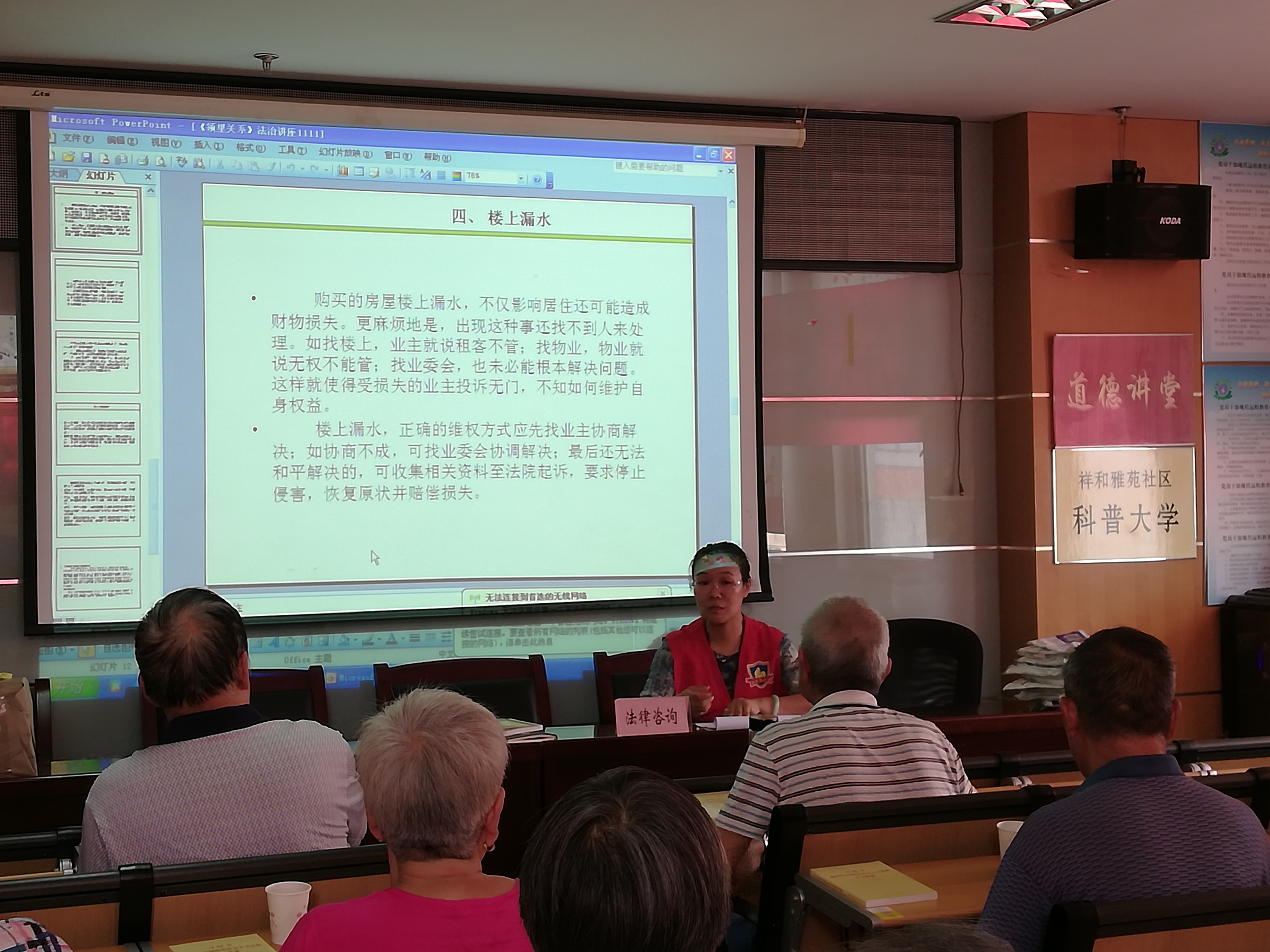 祥和雅苑社区近期调解过多起邻里纠纷,居民对此类纠纷的解决方法需求较大,因此社区居民学校于2019年9月18日邀请平安志愿者高志萍律师来到祥和雅苑社区开展《邻居关系》的法律讲座。高律师从居民热点纠纷出发,详细地为居民讲解了如何处理盖房导致的通行纠纷、采光纠纷,楼上噪音、漏水等纠纷问题。高律师建议居民们碰到邻里纠纷时,双方应先协商处理;若协商不成,可由业委会或居委会调解;如再不能解决,才会采用报警或诉讼处理的方式解决。居民们听的仔细,问的迫切,高律师为一一地解答了居民们提出的问题,为他们支招。最后高律师劝导大家:邻里之间,抬头不见低头见,应相互理解、互相体谅矛盾发生,双方考虑问题的前提还应当以和为贵,切勿因一时之气而坏了邻里关系。