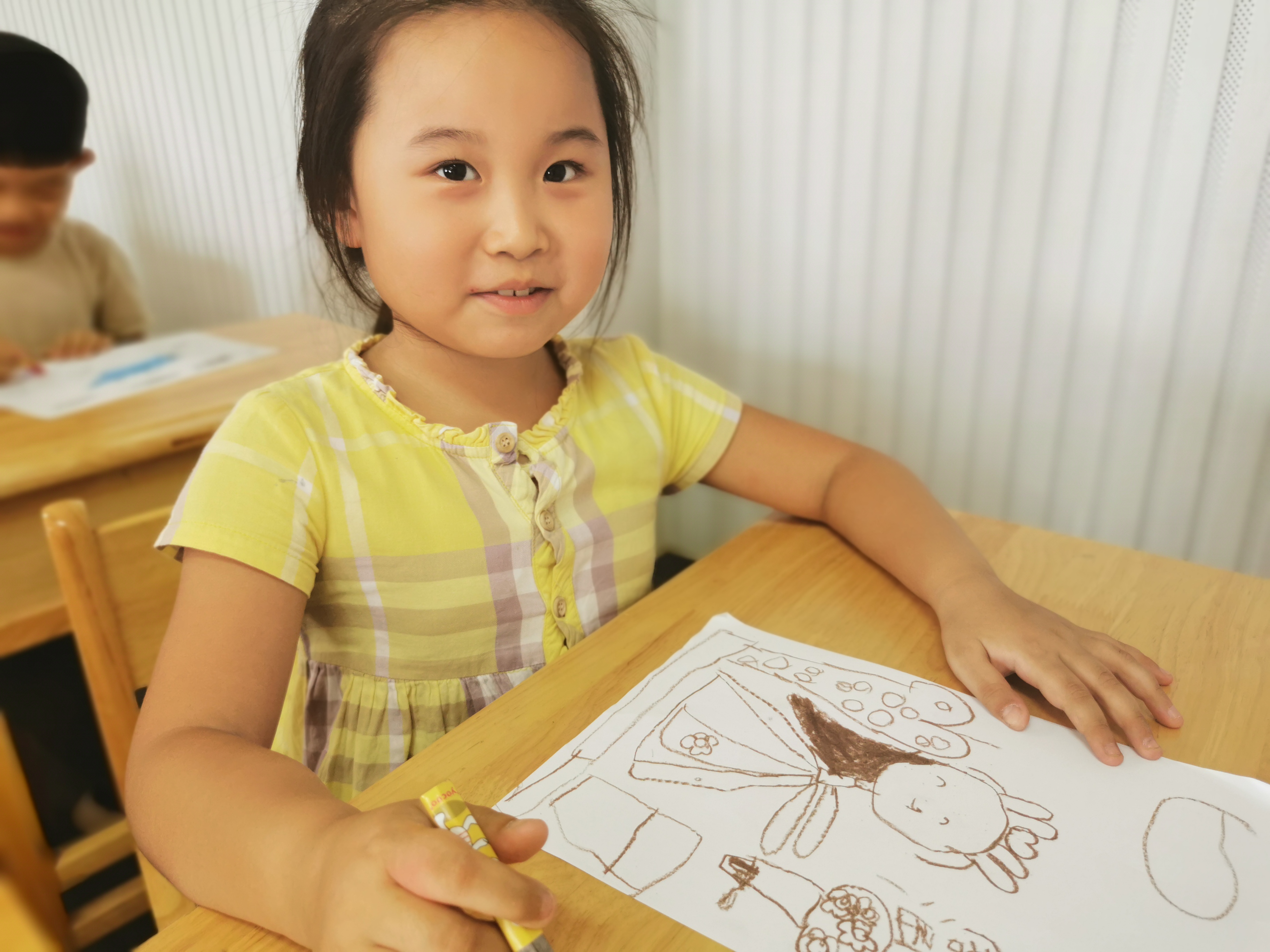 “这个是正在唱歌的我,这个是在画画的我,下面是在跳舞的我,因为我也很喜欢舞蹈。”小慧说。“我画的是海军在航行。我喜欢海军。”铭铭这样分享道。
