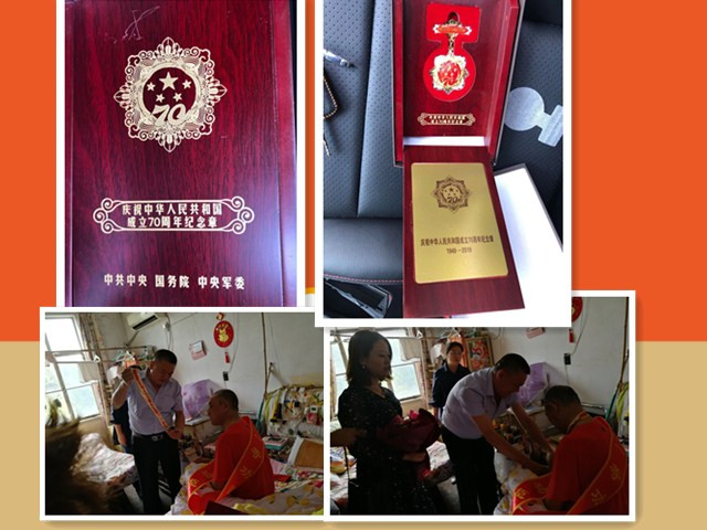 张延重是一位参加过解放战争济南战役,荣立过一等功的88岁老战士,曾因作战英勇头部负伤。此次颁发庆祝中华人民共和国成立70周年纪念章是对他在争取民族独立、国家解放的战争中做出的贡献表达崇高的敬意,并向他致以节日的问候和良好的祝愿。