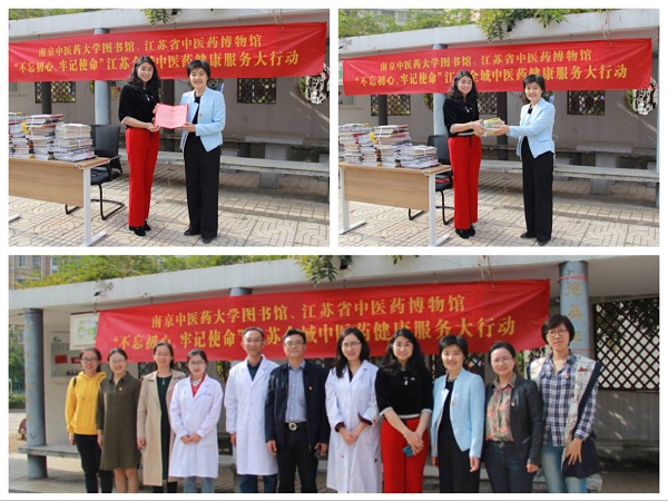 2019年10月23日上午,南京中医药大学图书馆、江苏省中医药博物馆与西岗街道听竹社区社区教育中心联合开展深层次的结对共建,在为辖区居民送去健康义诊的同时再次向社区教育中心捐赠图书300余册。