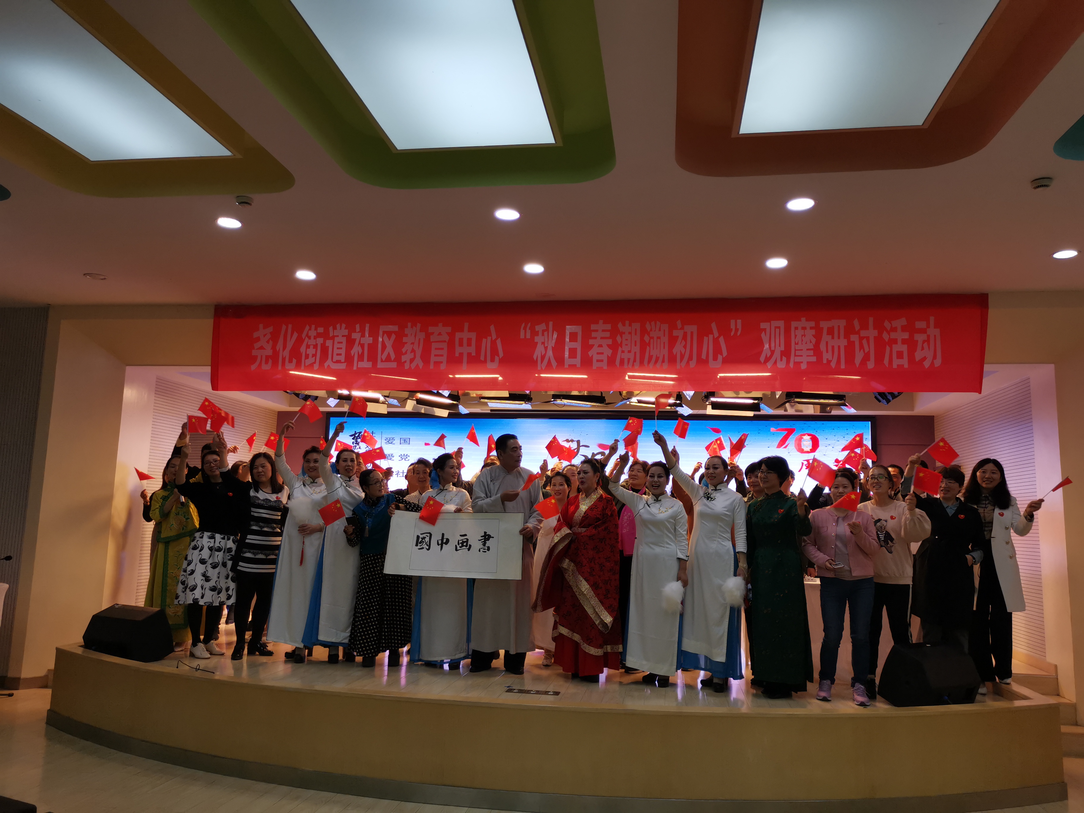 10月25日,2019年社区教育观摩活动第七站来到尧化。尧化街道社区教育中心围绕街道品牌建设,开展“爱国爱党爱社区之‘秋日春潮溯初心’”的主题活动。参加本次活动的有栖霞区尧化街道公共服务科李金海科长,栖霞区社区培训学院谷雨娥副校长,各街道社区教育中心校长和老师,各街道驻点老师,以及尧化街道各社区部分居民。