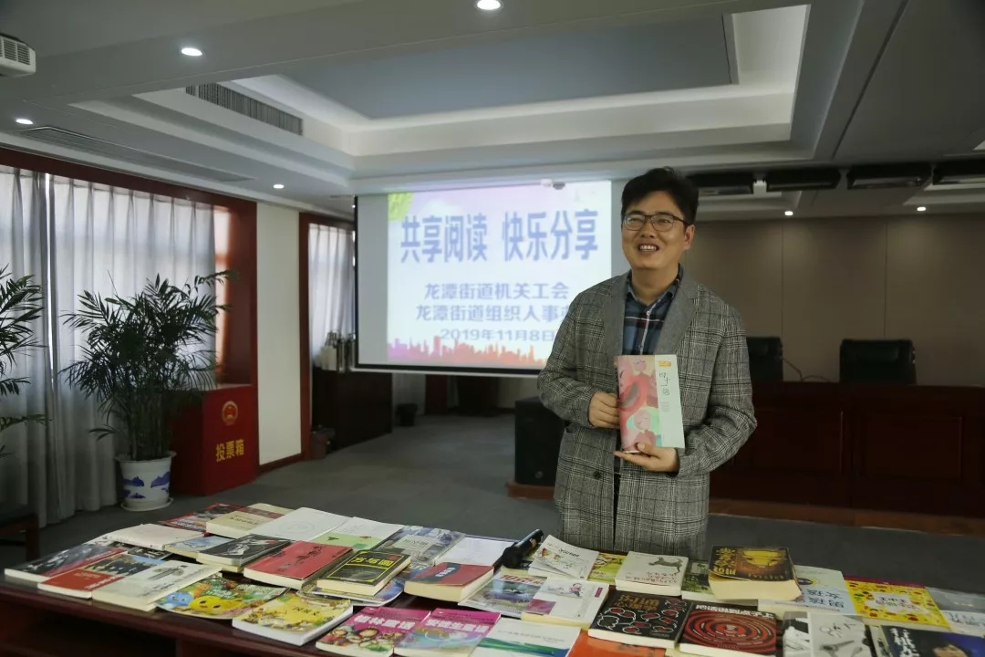 11月8日,在龙潭街道办事处7楼会议室举办了一场别开生面的“共享阅读 快乐分享”图书换享活动。此次活动由龙潭街道机关工会和组织人事办联合举办,活动的开展得到了机关干部职工积极响应和踊跃参与。