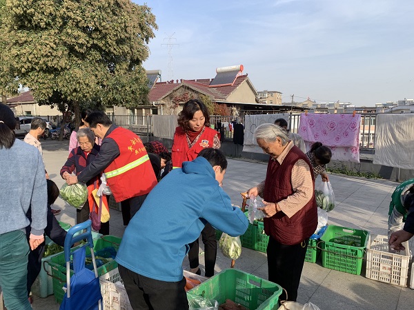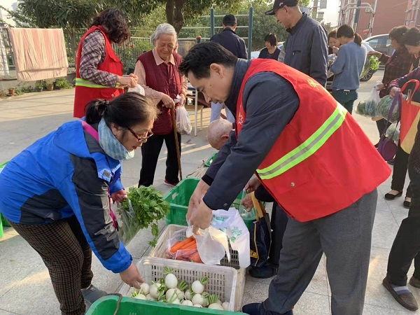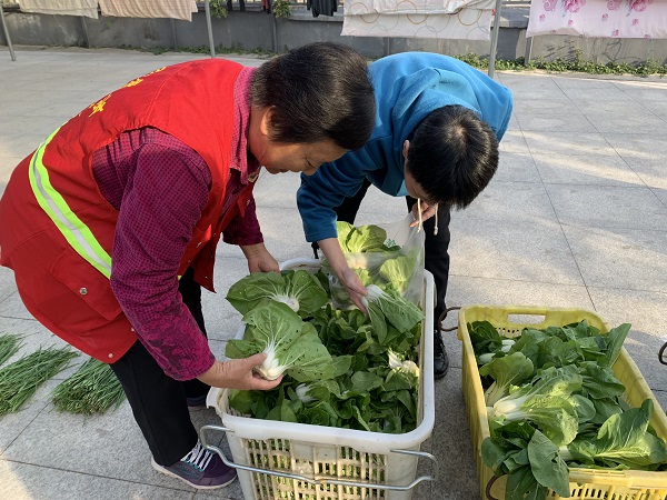 活动当天一早,志愿者就帮着菜农将一筐筐蔬菜从运货车上卸下、摆放整齐。居民们听说消息后也都聚集到活动场地,瞬间,现场就热闹起来,成了一片小型的“自选商场”。为保障买菜秩序,社区志愿者也忙前忙后,帮着居民一同协助称菜、装菜等,吆喝声、问价声不绝于耳,现场秩序一片井然,同时很多路过的居民也被活动所吸引,停下里挑选实惠的蔬菜。