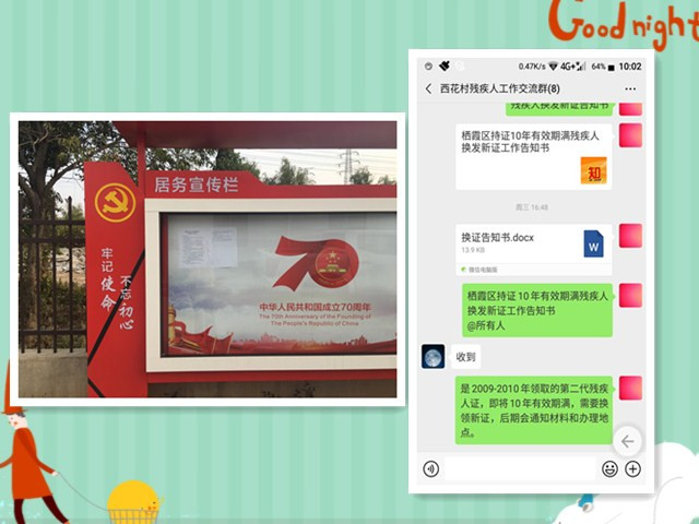 为使居民及时知晓残疾人换证工作,社区居民学校通过张贴宣传单、掌上云社区、电话询问和入户走访等形式开展便民换证宣传活动,大力宣传政府的优惠政策,帮助社区内需要换证残疾人知晓利民惠民政策,促进残疾人事业健康稳定快速发展。