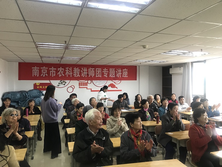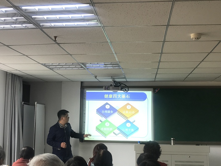 本次讲座邀请了南京市农科教讲师团的颜玉华博士前来讲解。活动中,颜博士为辖区居民详细讲解了合理膳食、适量运动、戒烟戒酒、心理平衡等健康教育内容,同时,告诫大家当自己的身体出现状况时一定要保持乐观、良好的心态,平时要多运动,发展个人爱好,从而达到延年益寿的效果。