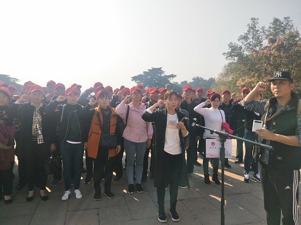 在雨花台烈士陵园,全体党员首先瞻仰了革命烈士纪念碑,庄严地向革命先烈敬上鲜花,由王静同志带领全体党员在雨花台烈士陵园广场重温了入党誓词。在凭吊雨花烈士纪念碑后,大家参观了雨花台烈士纪念馆。邓中夏、恽代英、许包野、冷少农……一个个镌刻在石碑上的姓名、一幅幅共产党人年轻面庞的照片,让人们仿佛置身于革命年代的峥嵘岁月,再现了雨花英烈可歌可泣的英勇事迹和催人奋进的牺牲精神,形象诠释了“不忘初心、牢记使命”的丰富内涵。