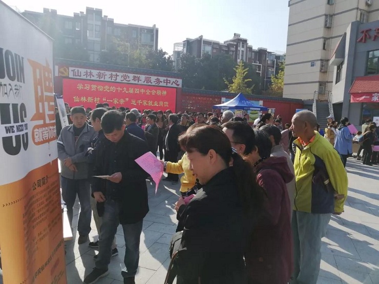 为贯彻落实党的十九届四中全会精神,11月22日,仙林街道在仙林新村社区举办“一家亲·送千家就业岗位”活动,近40家单位现场提供了600多个就业岗位。