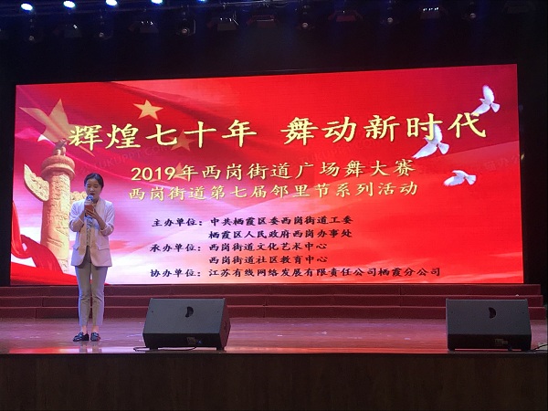 11月23日下午,由西岗街道文化艺术中心、西岗街道社区教育中心承办,江苏有线网络发展有限责任公司栖霞分公司协办的“辉煌七十年 舞动新时代”2019年西岗街道广场舞(西岗街道第七届邻里节系列活动)在摄山星城小学体育馆成功举办,共有来自辖区内各社区(村)、党支部的11支队伍参加此次比赛,现场观看居民达300余人。