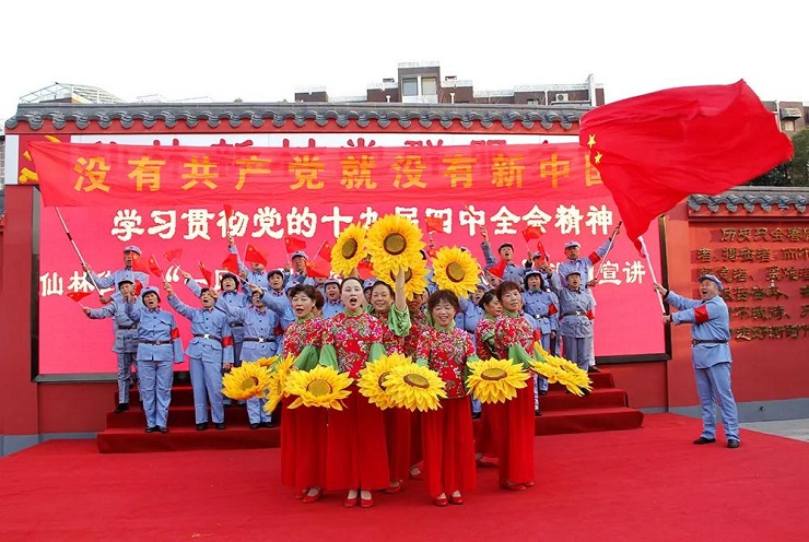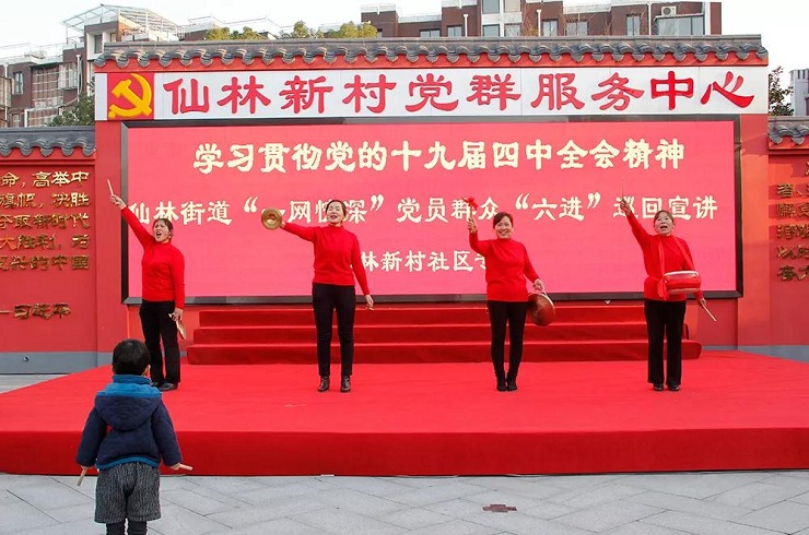 12月3日下午1点,学习贯彻党的十九届四中全会精神仙林街道“一网情深”党员群众“六进”巡回宣讲团走进仙林新村社区暨仙林新村“一家亲”千家颂党恩活动在仙林新村南区广场隆重召开。街道、社区党员群众近千人参加。