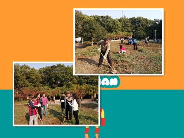 12月5日下午,叔叔阿姨们戴着手套、镰刀、铲子等工具,在栖化新村小广场的草坪上忙碌着。原来是经过上次的居民议事会后,居民们自发组织起来在花圃除草呢!