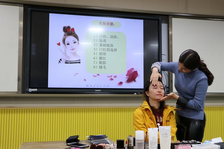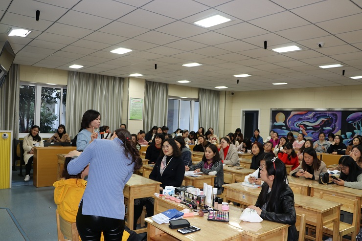 为提升学校女性教职工的礼仪修养和化妆技巧,树立女性良好形象,在工作和生活中展现知识女性优雅、靓丽的风采,12月12日下午,由仙林街道社区教育中心联合乐学书院主办,南师附中仙林小学承办的“送教进校园”日常妆容培训活动在小学录播教室开展,学校50多名教职工参加了化妆培训。