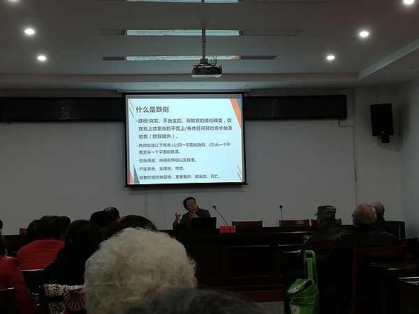 活动现场,有80余位社区老人,老人们早早就来到了现场,有序排队签到落座。王教授深入浅出,以 “如何避免人生最后一摔”进入主题,她的讲课引人入胜。王教授为居民们详细介绍了老年人跌倒对生活的危害以及如何预防跌倒,跌倒主要有哪些自身因素和心理因素,劝导老年人要服老,生活中要穿好、吃好、用好以及合理运动,不要逞能。课程中王教授亲自给居民们演示如何活动筋骨防止跌倒。课上,助教给居民们发放了评估表,在王教授的指导下居民们纷纷填写了老年人跌倒风险评估表。填完表,王教授现场给居民做了跌倒风险评估测试,并且热心地解答居民的疑问,为居民普及冬季关节养生的知识。