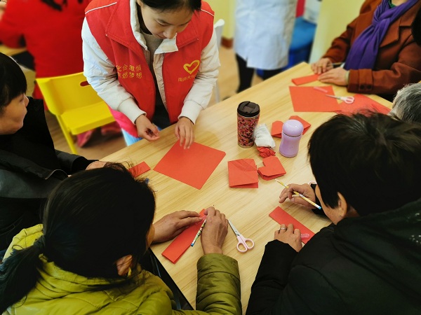 为传承民族文化,提高老年人幸福生活指数,改善社区老年人生活苦闷寂寞状况,12月18日,西岗街道闻兰社区联合南京师范大学志愿者共同开展了以“巧手灵心”为主题的手工剪纸活动。
