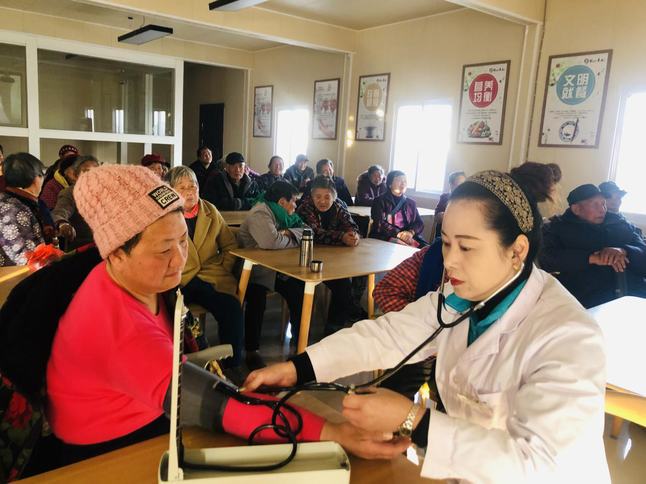 戏曲结束后,家庭医生还给老人们测量血压,并一一给予了日常生活保养建议。